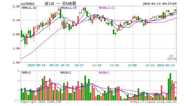 1月13日,深100ETF方正富邦(159961)开盘涨0.18%,报2.174元。深100ETF方正富邦(159961)重仓股方面,宁德时代开盘涨1.26%,美的集团跌0.92%,中际旭创跌1.89%,东方财富涨1.00%,新易盛跌1.56%,立讯精密涨0.40%,比亚迪涨1.57%,阳光电源跌0.17%,五粮液涨0.41%,格力电器涨0.17%。